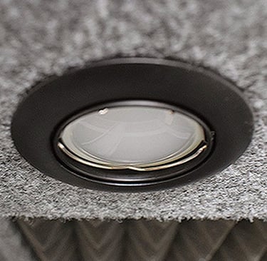 Acabado exterior absorbente en fieltro textil ignífugo.